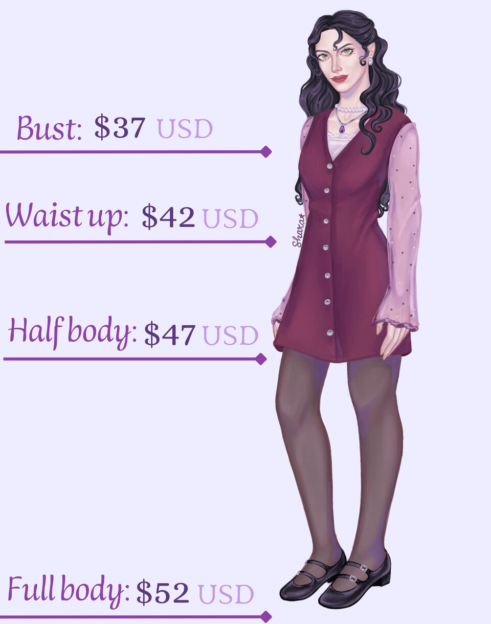 •I reserve the right to decline your commission for any reason.Please send as many references as you can (pose, clothes, hairstyle, etc)